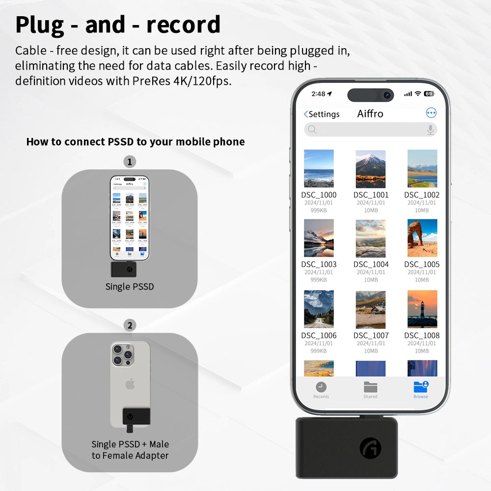 Aiffro P30 3 in 1 Portable SSD, Supports ProRes/Microphone