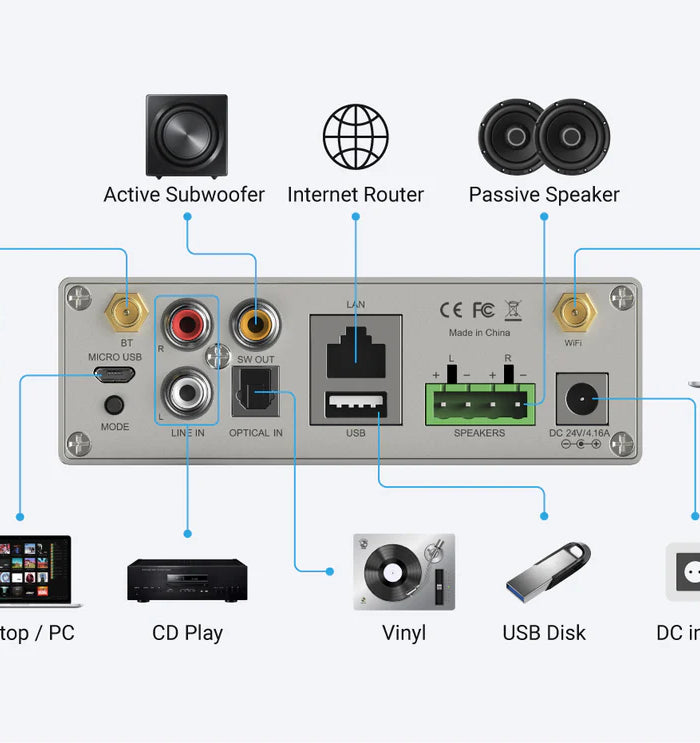 Amazing Sound, Connect Everything. ESS9023 Sabre DAC Hi-res music. 6 Wireless Streaming Supported: WiFi, AirPlay, Bluetooth 5.0 aptX HD, DLNA, UPnP. 3... Read more
