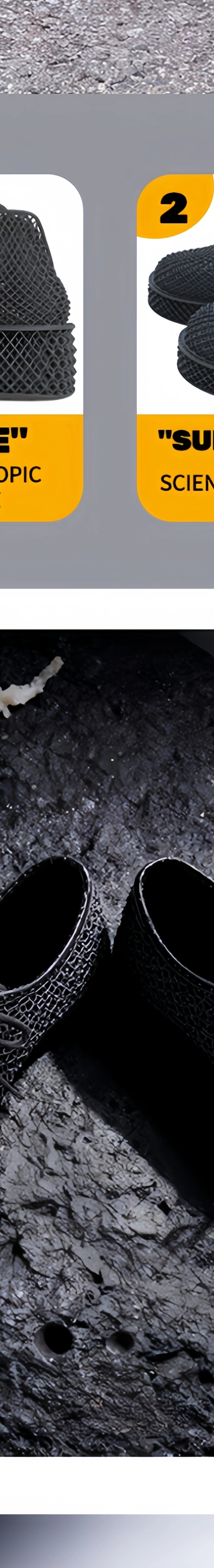 ☁️ 3D-Printed Lattice Midsole — engineered for maximum cushioning and adaptive support with a visually striking open-cell design.