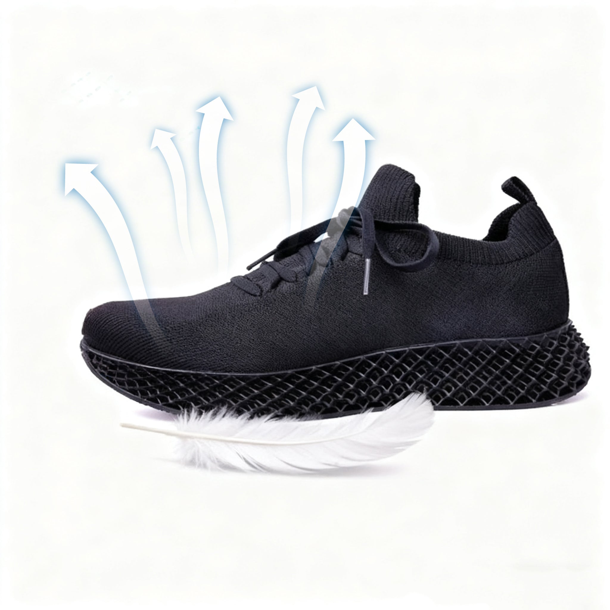 🌬️ Breathable Upper — The upper features mesh or engineered textile with 3D-printed reinforcement, enabling superior airflow and comfort.
