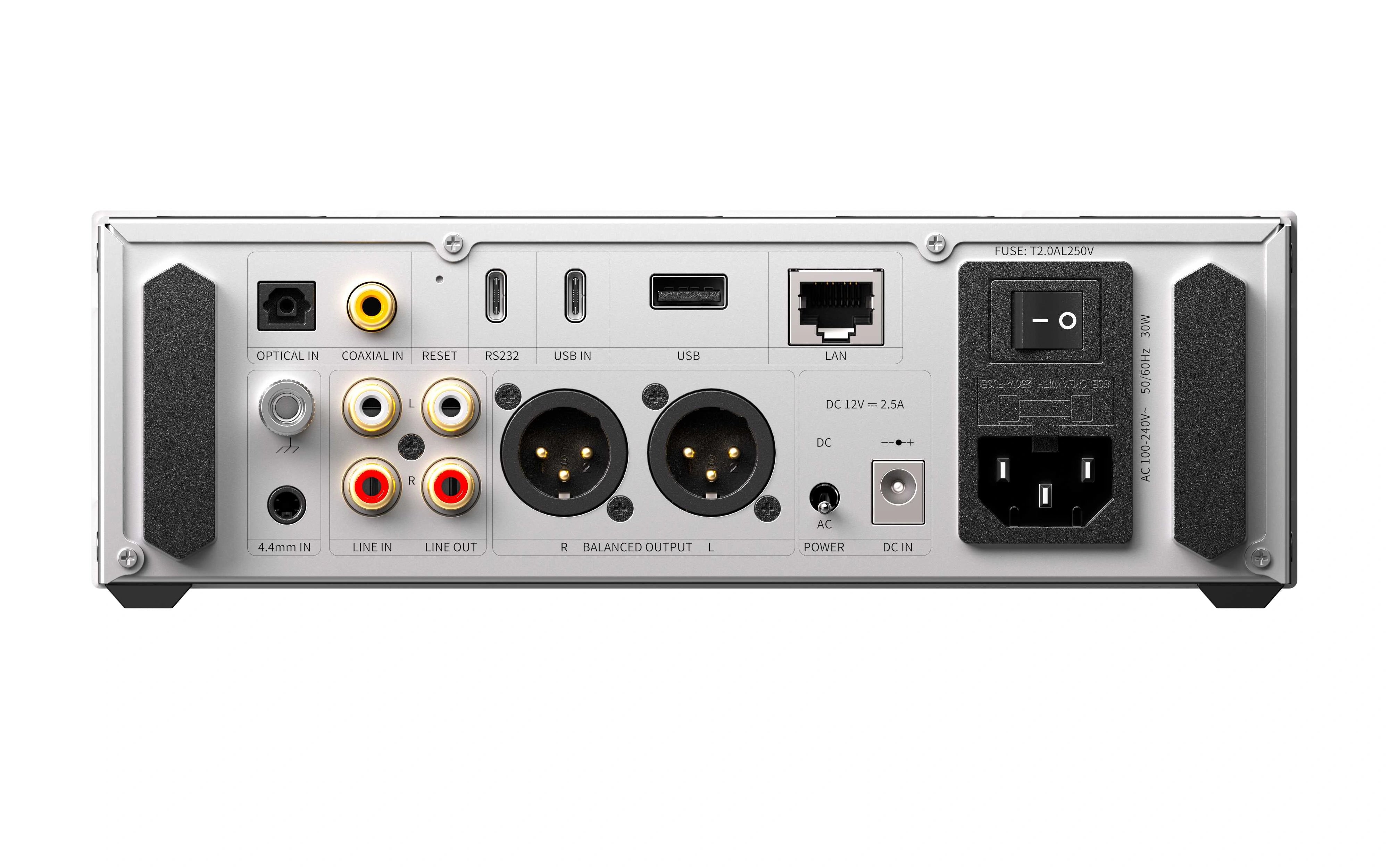 LO: Output is switched to the rear panel, the volume knob can not adjust the volume. At this time the front panel headphone ports have no output.