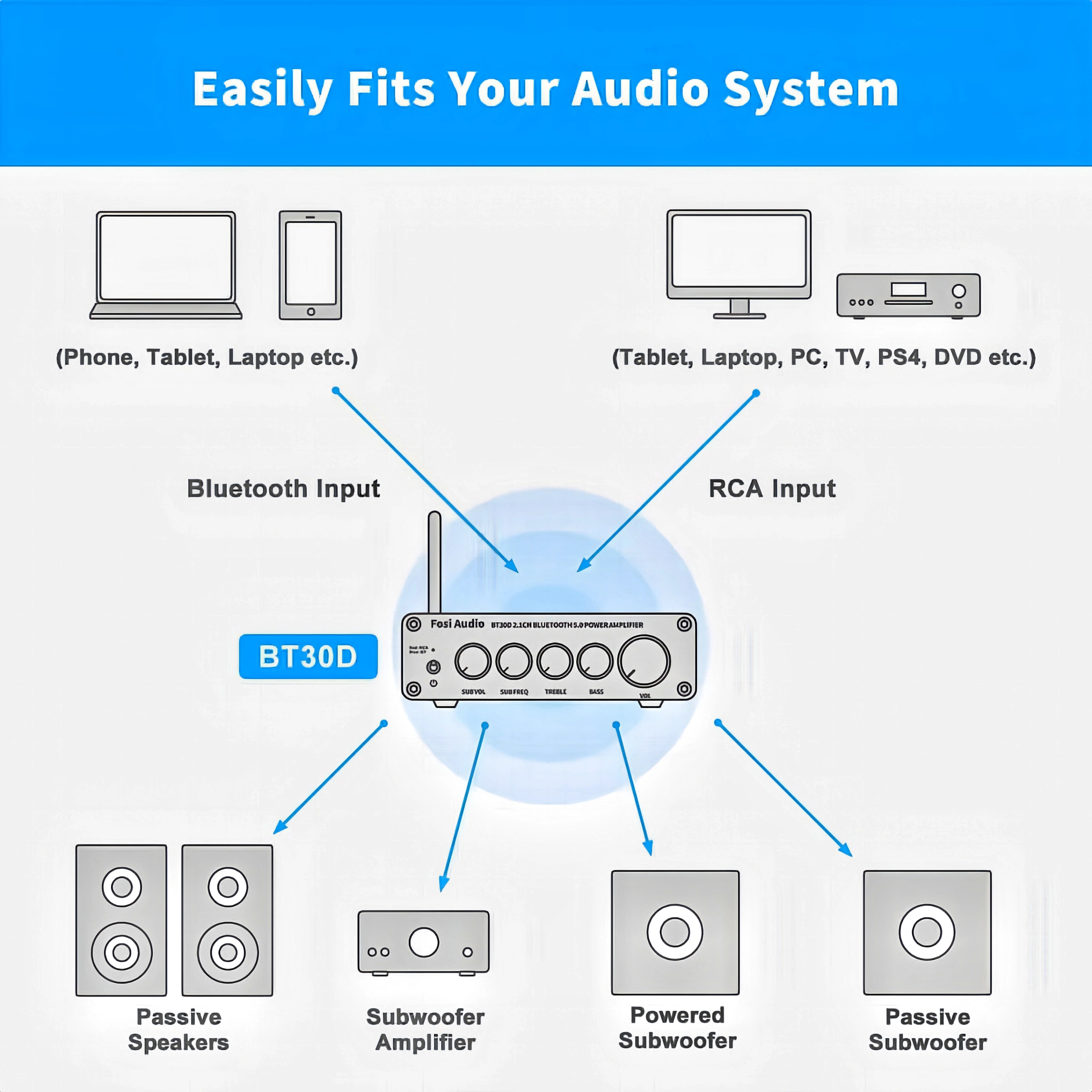 Fosi Audio BT30D – 2.1 Channel Class-D Bluetooth Amplifier with Sub Out