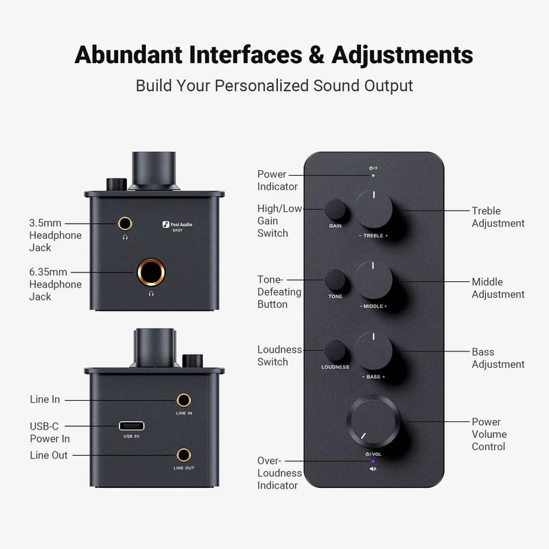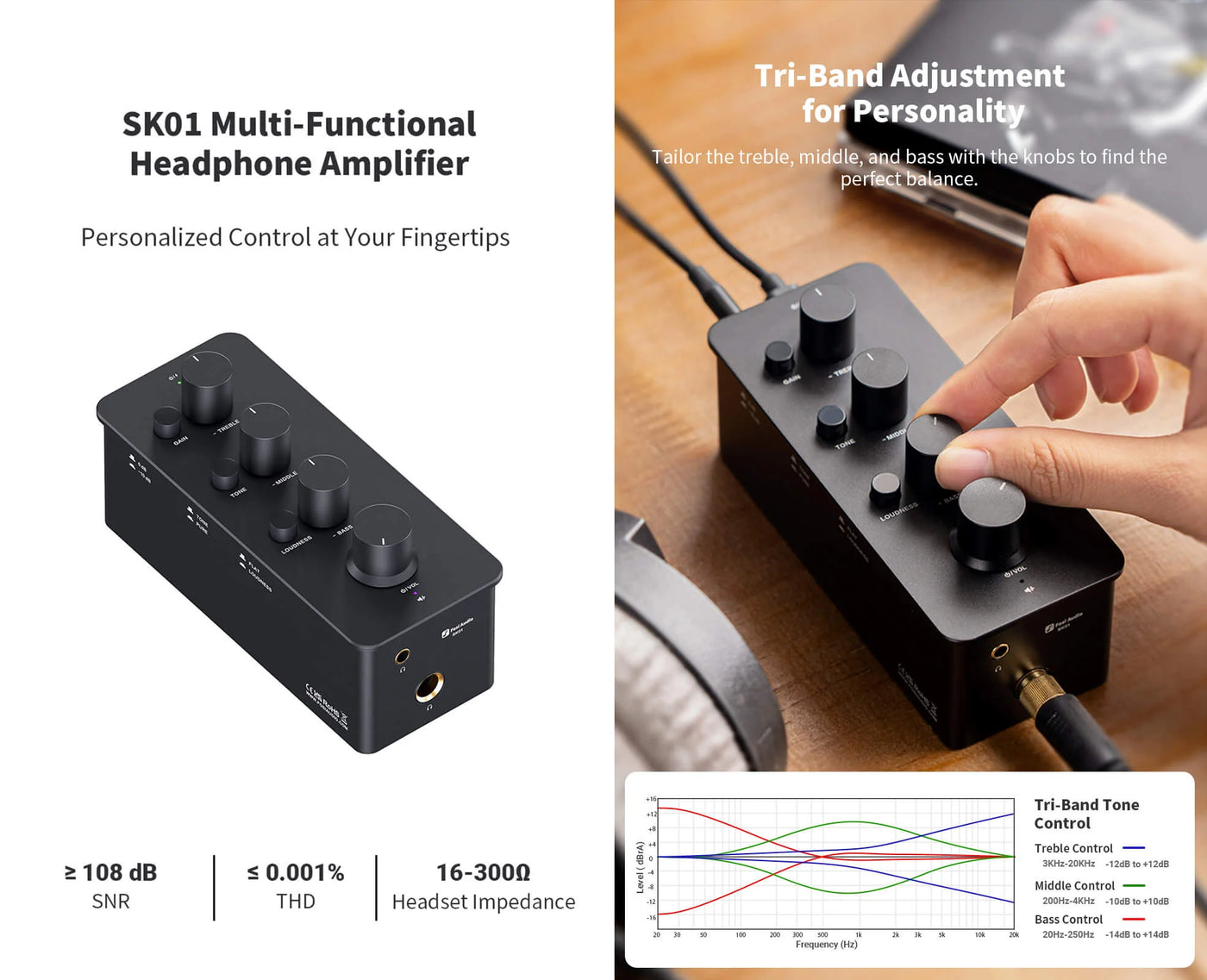 Fosi Audio SK01 – Compact Headphone Amplifier & Preamp with Tone Control