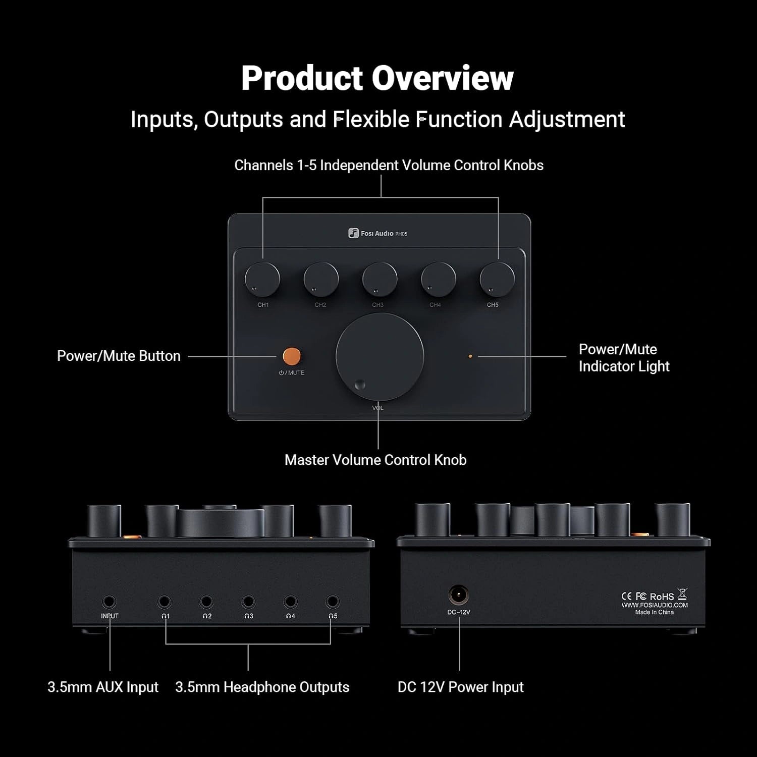 Independent Amplification: Each of the five channels can independently output power up to 310mW@32Ω, perfectly compatible with a variety of monitor headphones and IEMs with impedance ranging from 16 to 300 ohms, providing flexible audio sharing. PH05 is an upgrade model of PH04 which offers one more channel and higher power output.