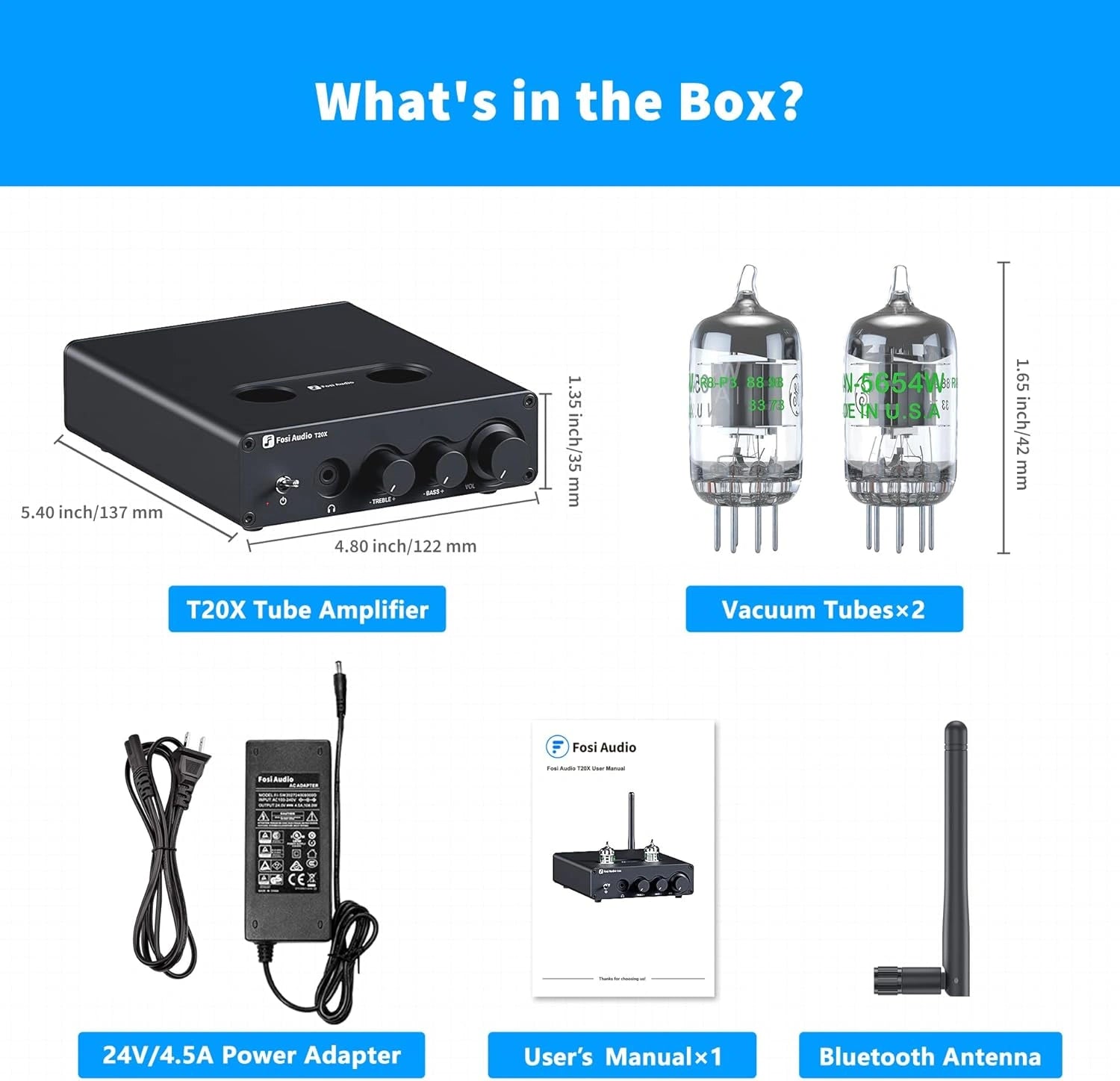 Fosi Audio T20X Bluetooth Tube Amplifier Headphone