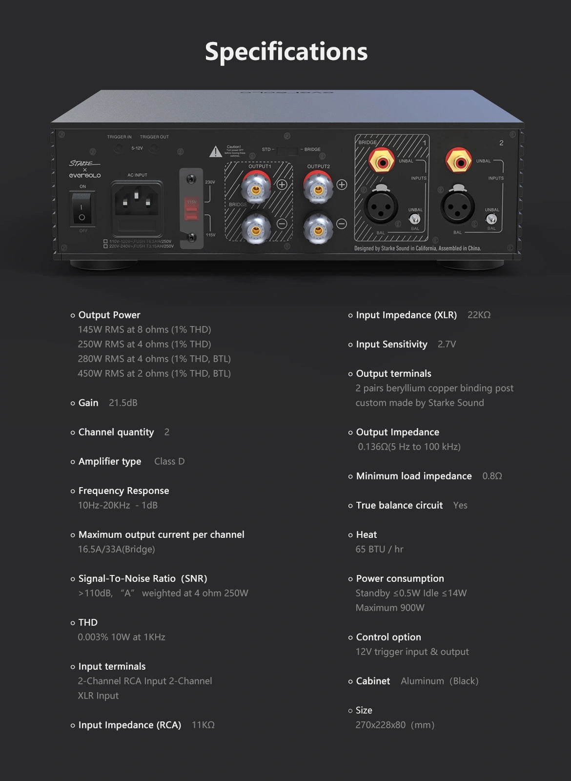 Wide Frequency Response (10Hz - 100kHz): Reproduces the full spectrum of sound, capturing subtle harmonics and ultra-low bass that lesser amplifiers miss.