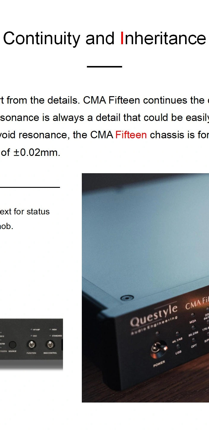 Ideal for audiophiles and professionals, the Questyle CMA Fifteen bridges the gap between convenience and uncompromised fidelity, offering a truly "versatile without compromise" experience.