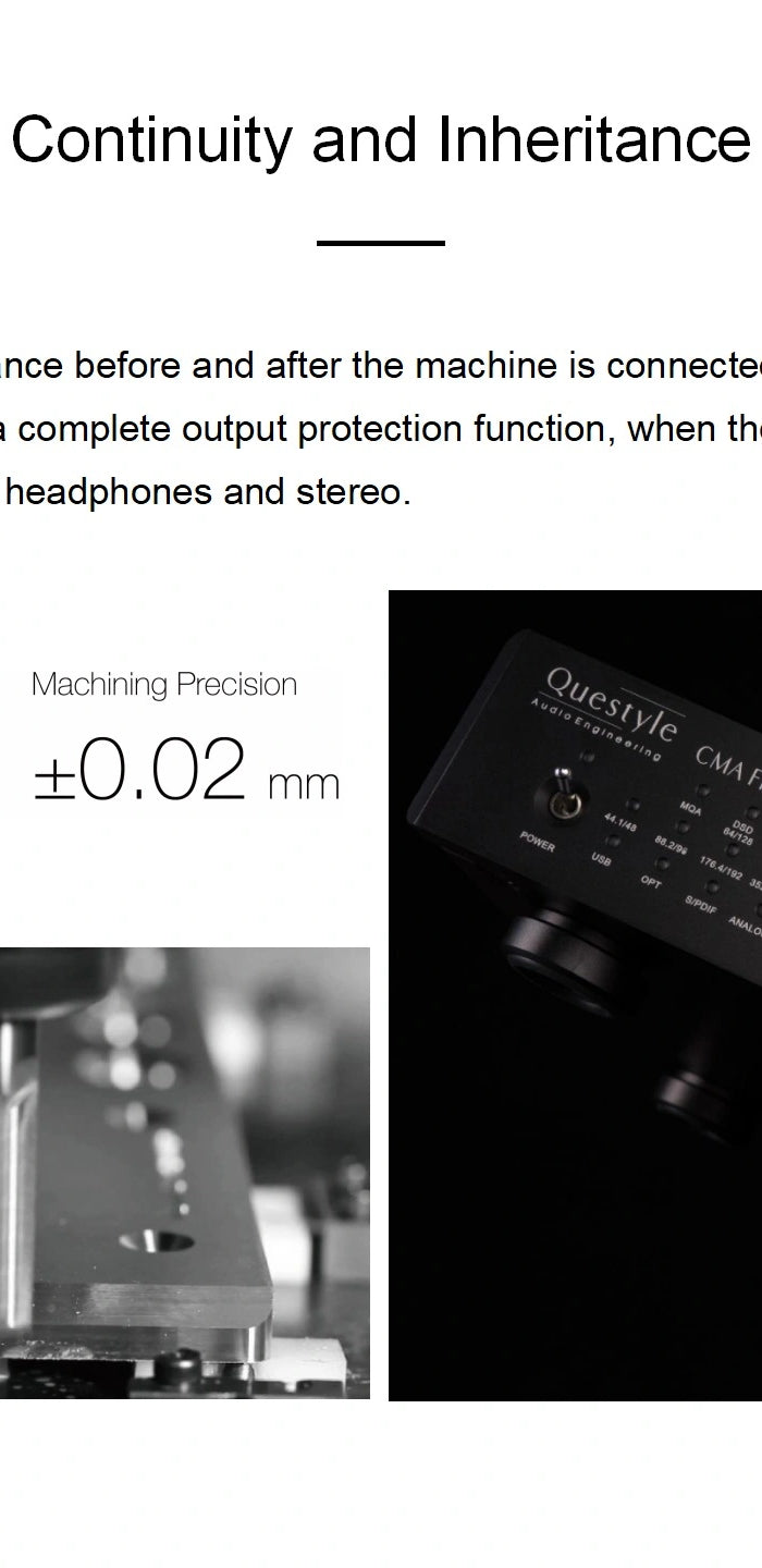 Premium Build & Design: Embraces Questyle's minimalist "Bauhaus" aesthetic with a sleek CNC-machined metal body, featuring mechanical dials and amber indicator lights for intuitive operation. The compact yet robust design prioritizes durability and user-friendly control.