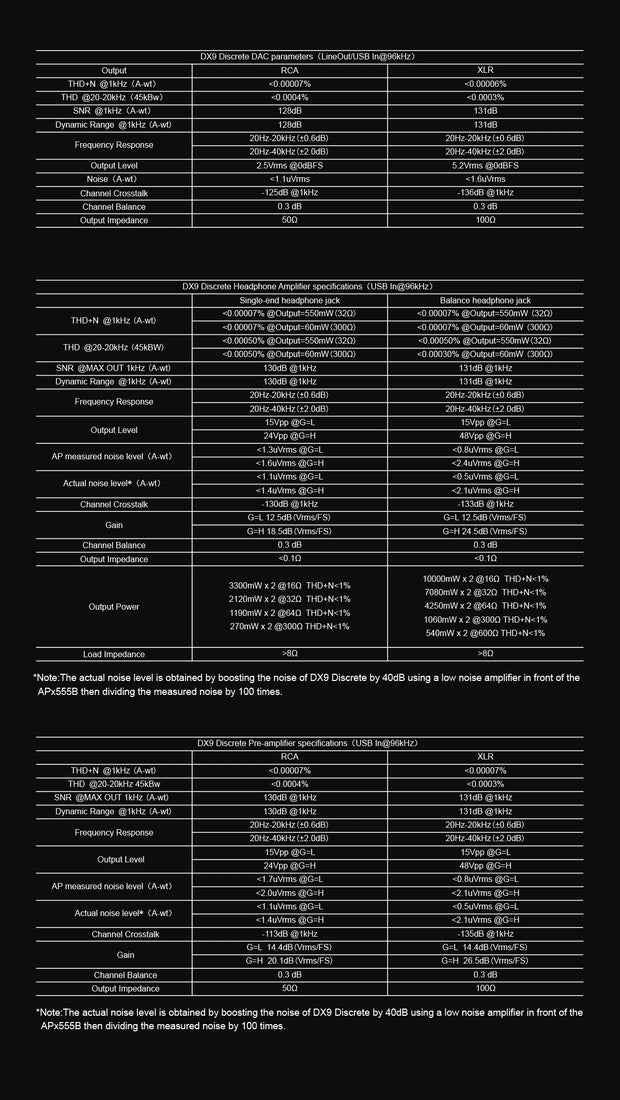 ·Fully Discrete Design: The "Discrete" inits name is its core philosophy. Unlike many competitors that use integrated operational amplifier(op-amp) chips the DX9 Discrete builds its analog output and amplification stages from individual, high-quality components like transistors,resistors, and capacitors.