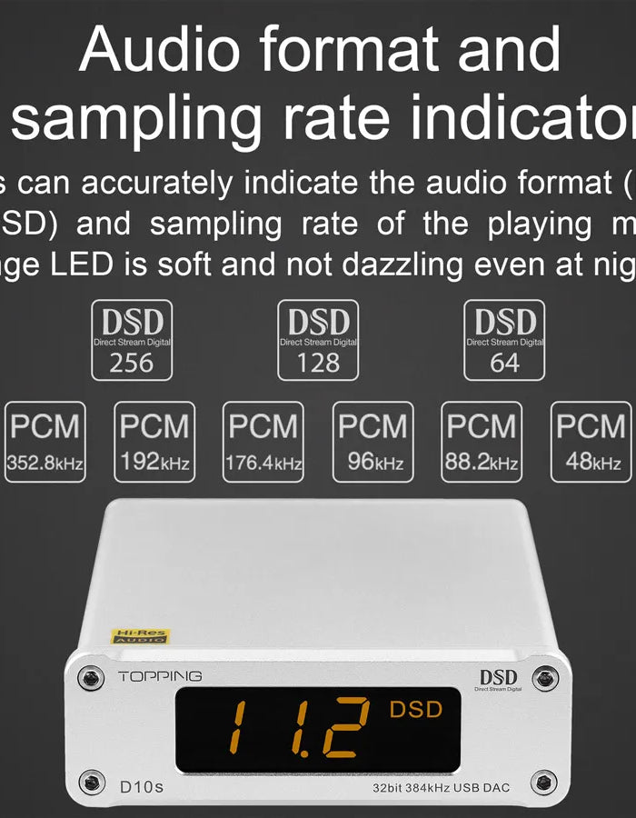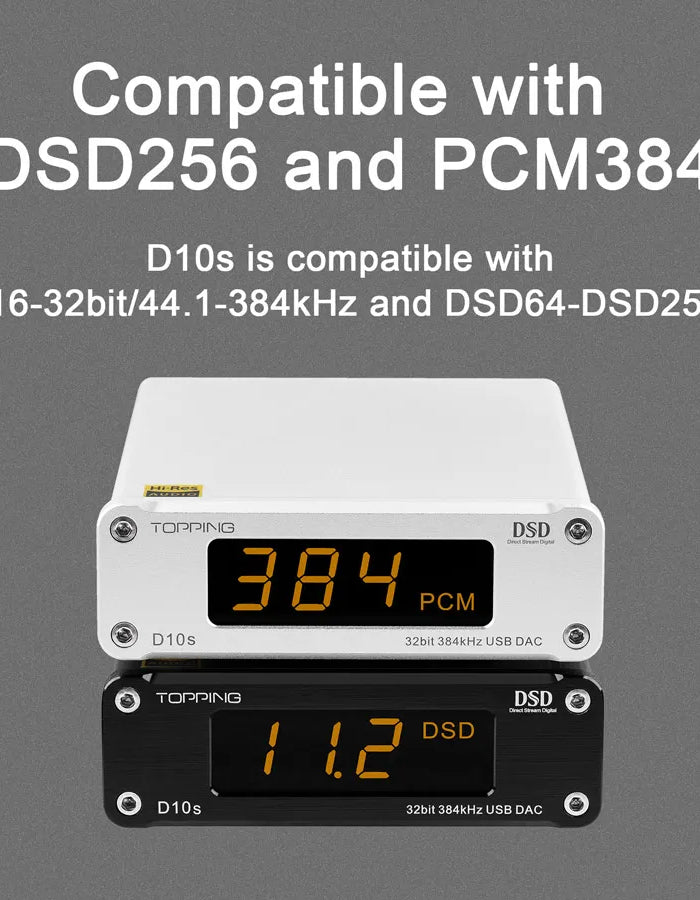 TOPPING D10s is a high-performance balanced USB digital-to-analog converter (DAC) designed for audiophiles seeking studio-grade sound quality. This compact yet powerful device features balanced XLR outputs for reduced noise and distortion, delivering crystal-clear audio with exceptional detail and dynamics.