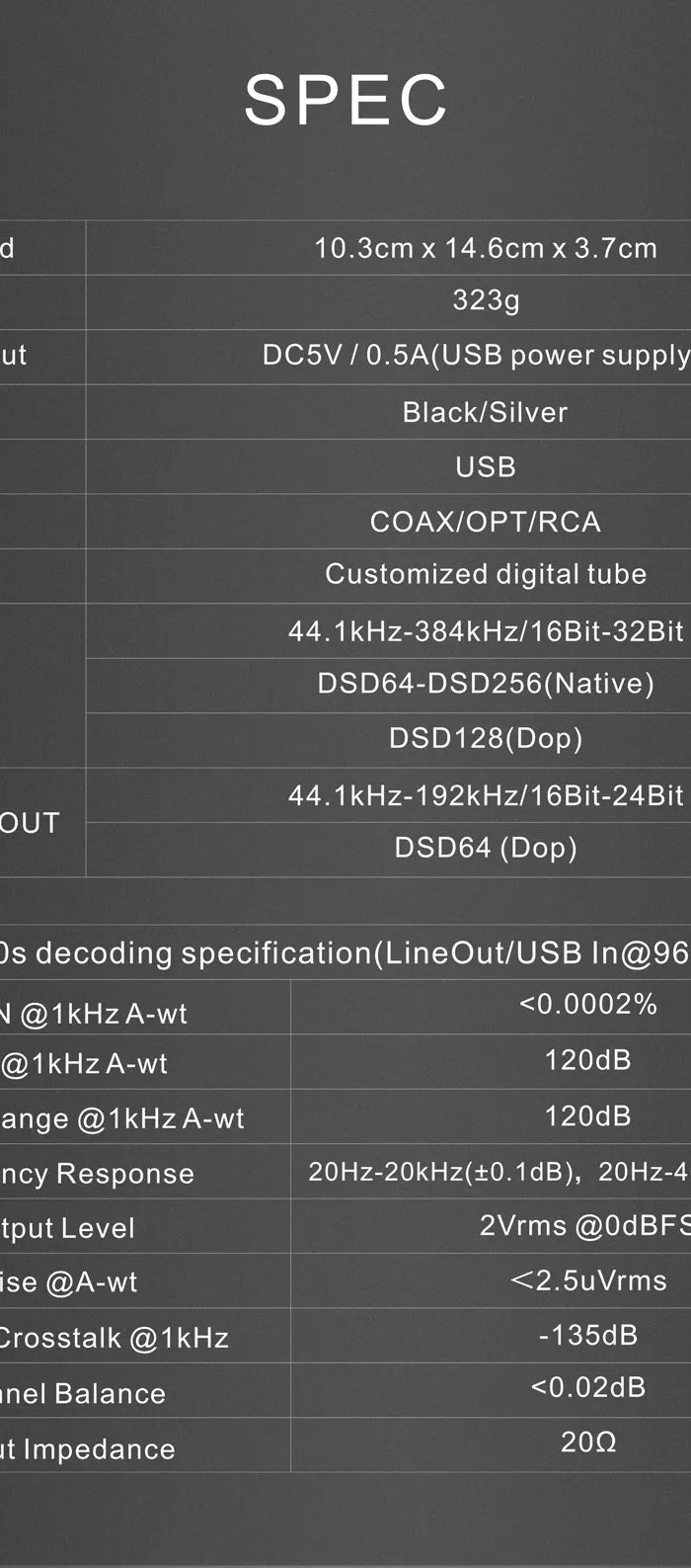 SNR: 122dB (balanced output)