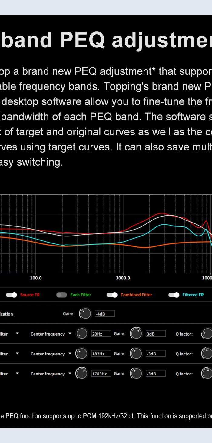 Customizable Gain Settings: Allows for optimized performance with different headphones and speakers