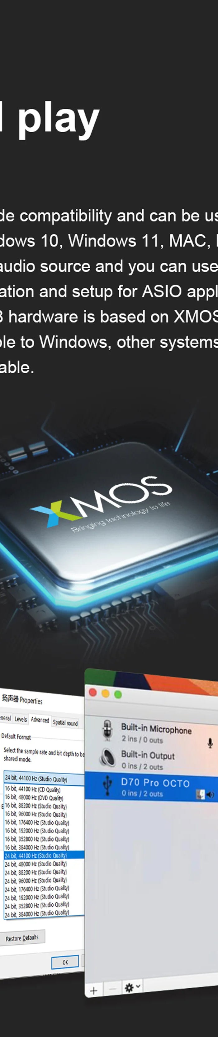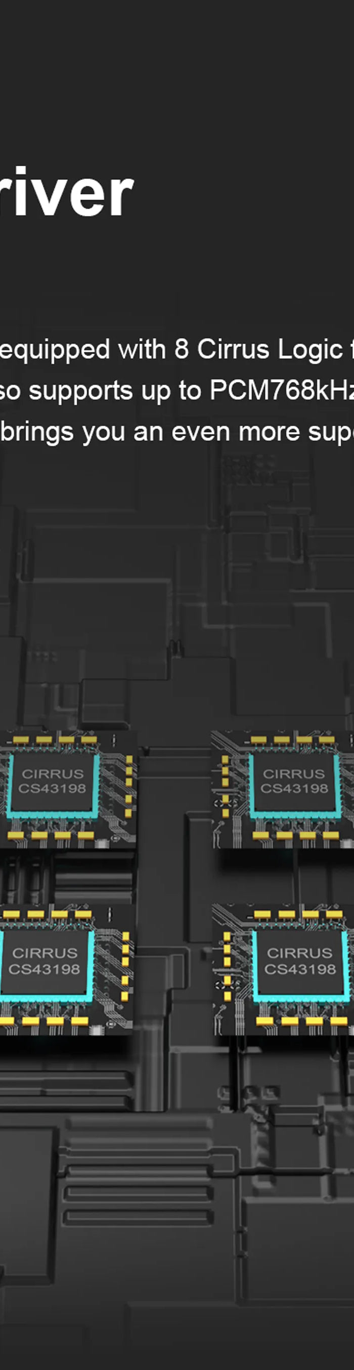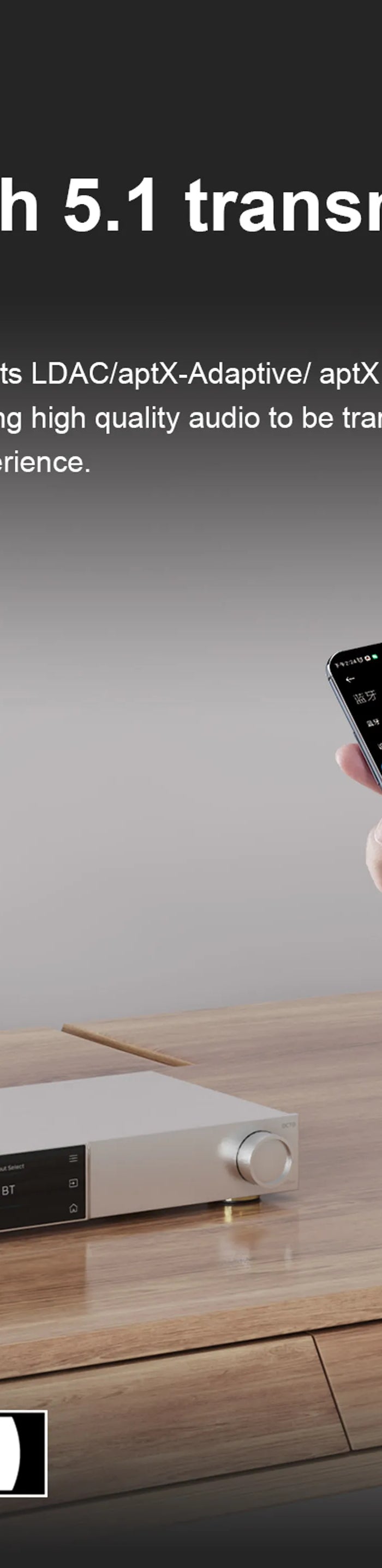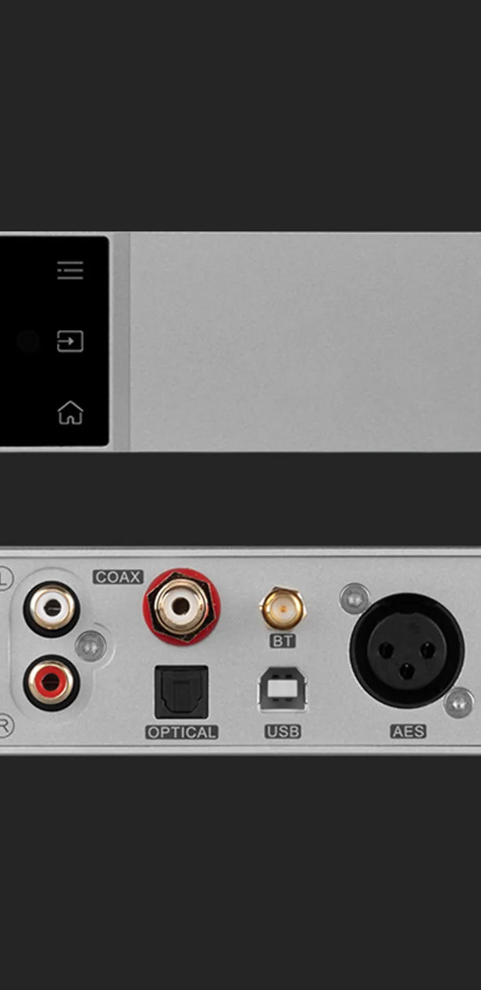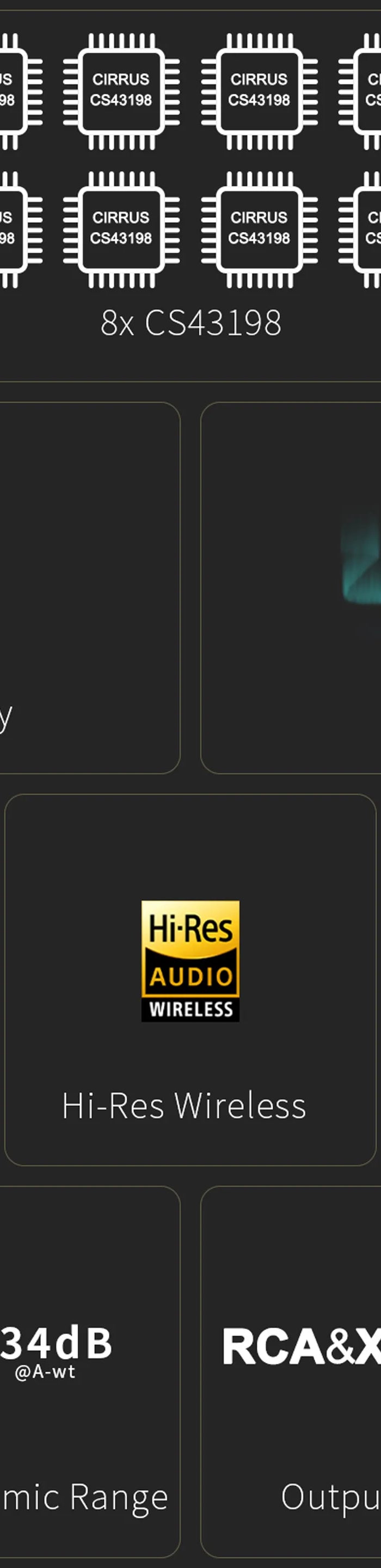 8-Channel ESS Sabre 9038Q2M DAC: Delivers ultra-low distortion (<0.0003% THD+N) and wide dynamic range (130dB), supporting up to 32bit/768kHz PCM and DSD512 decoding.