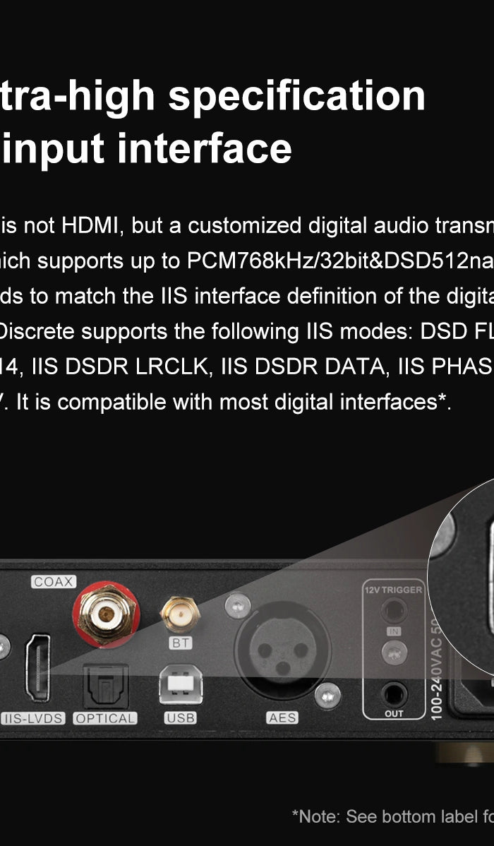 Versatile Connectivity: USB, IIS, Coaxial, Optical inputs with Bluetooth 5.0