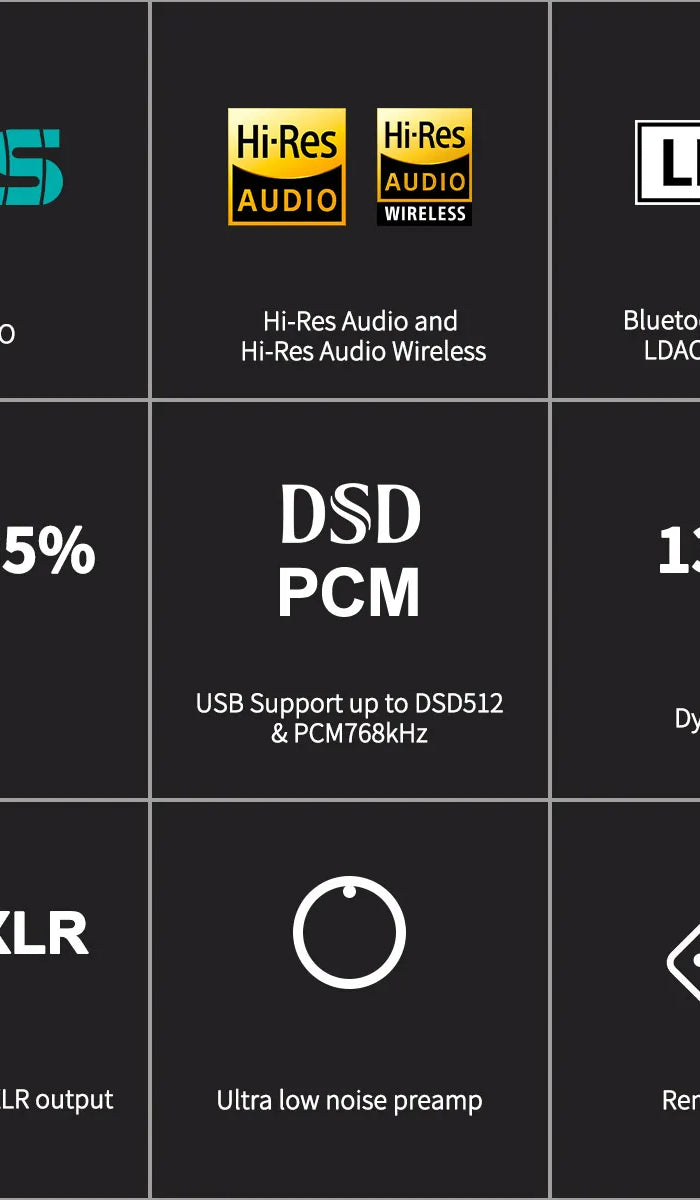 Full Format Support: Decodes PCM (up to 32bit/768kHz), DSD (up to DSD512 via DoP/Native), FLAC, ALAC, WAV, and MQA. Unlocks studio-quality sound from MQA-encoded music.