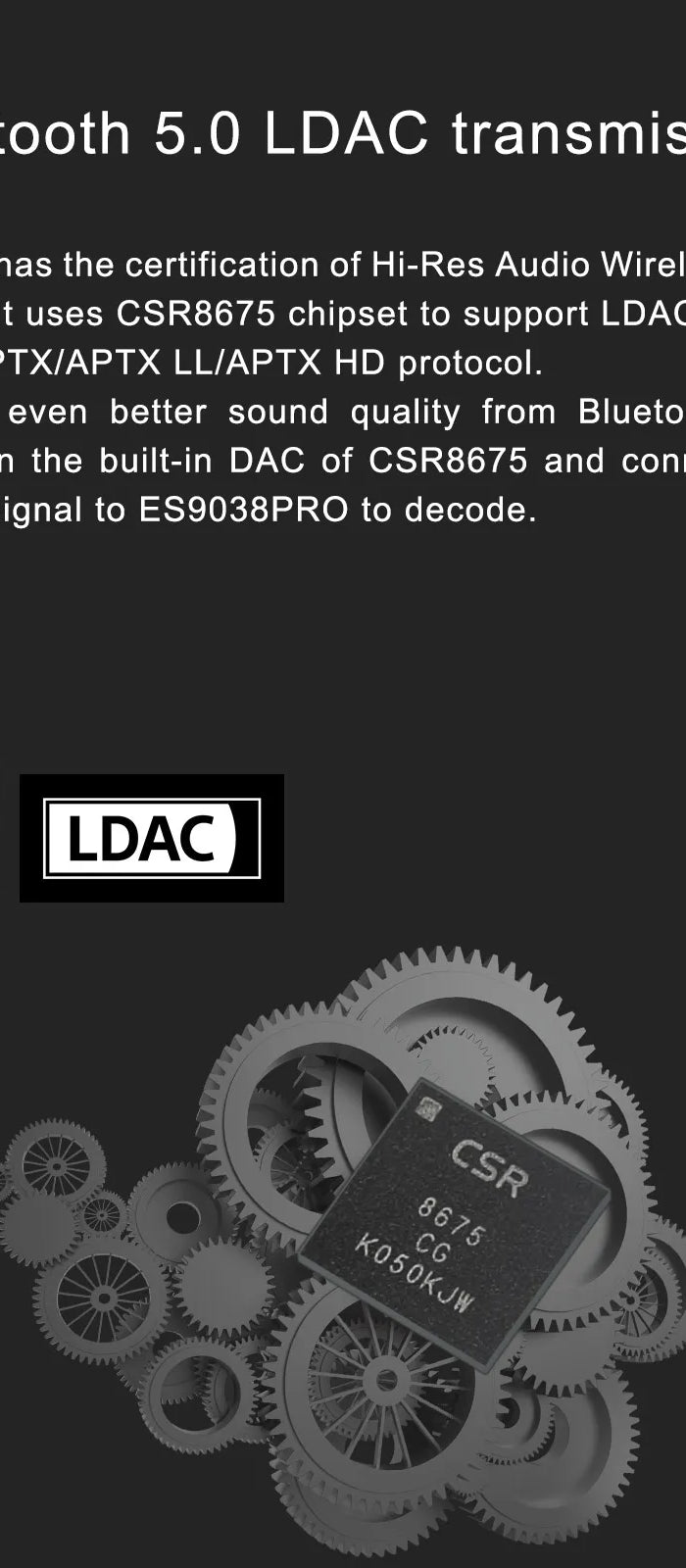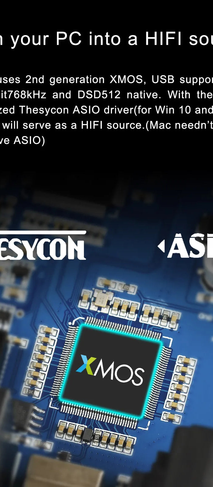 Premium DAC Chip: Low-noise, high-dynamic-range DAC minimizes distortion, reproducing every detail—from soft violin notes to deep bass—with clarity.