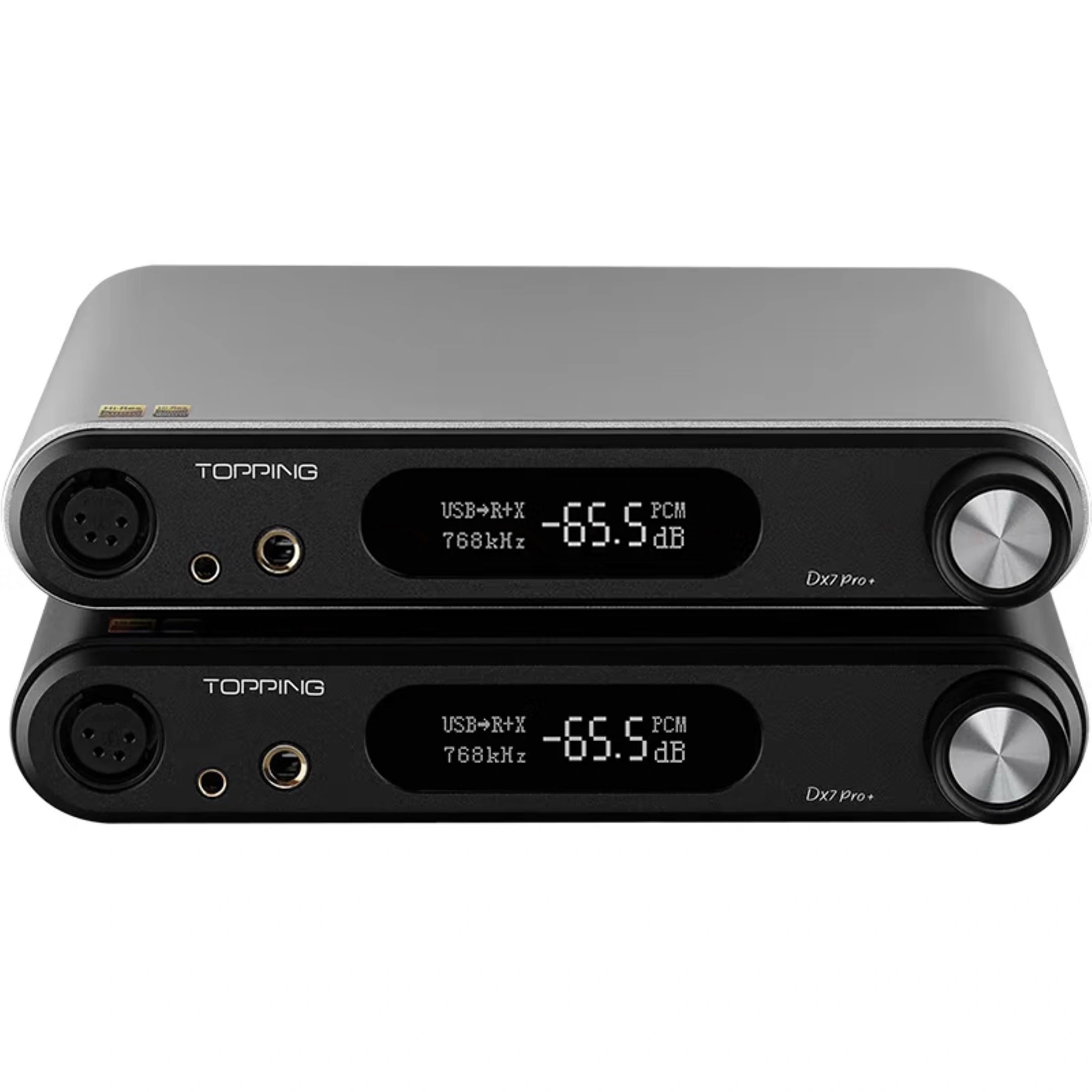 The TOPPING DX7 Pro+ is a flagshipgrade DAC (Digital-to-Analog Converterand Headphone Amplifier designed forthe discerning audiophile who demandsuncompromising performance andextensive connectivity. lt represents thepinnacle of TOPPlNG's engineering in astandalone unit,serving as a completehiah-fidelity audio source solution. Building upon the legacy of its successful predecessors, the DX7 Pro+ refines the formula with upgraded internal components and a more robust featureset, aiming for state-of-the-art measured performance and sonic purity.