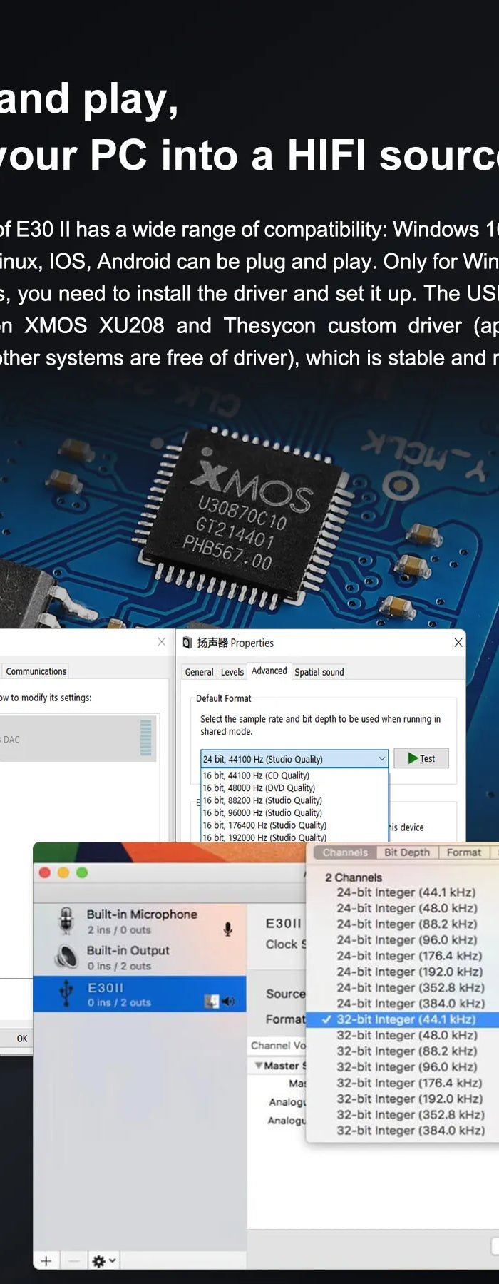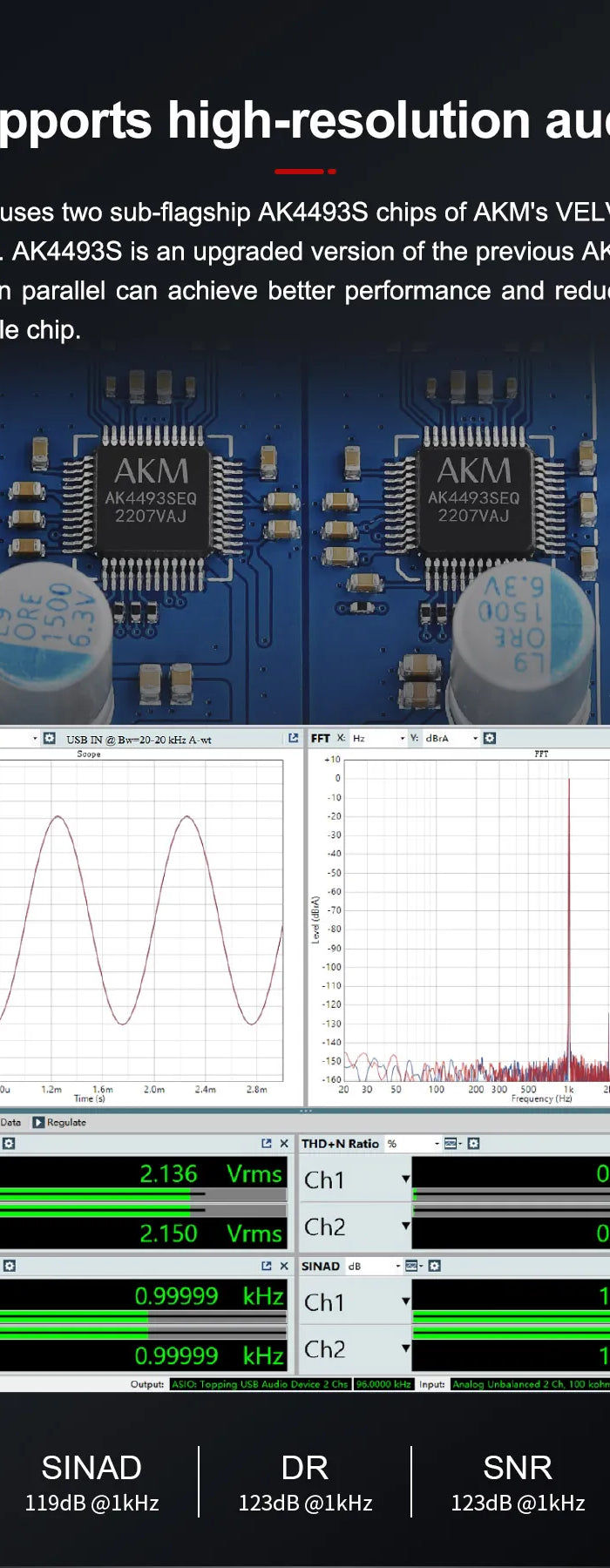 The E30 II delivers studio-grade sound with its AK4493S dual DAC chipset, supporting 32-bit/768kHz PCM and DSD512 native decoding. Experience ultra-low distortion (<0.0004%) and a dynamic range of 121dB, revealing intricate details in every track.