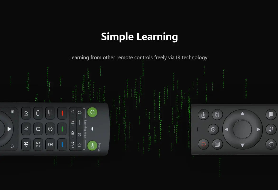 Learning Function Capability: (Please confirm product spec) The power button can be "learned" to control the power function of your TV or amplifier, reducing clutter and allowing you to control multiple devices with one remote.