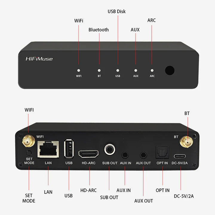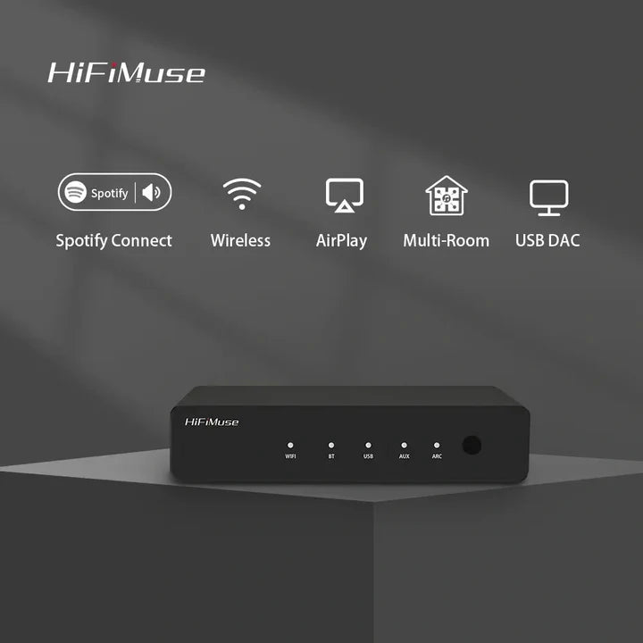 HiFiMuse R20 — это универсальный беспроводной аудиоресивер высокого качества, разработанный для модернизации вашей существующей стереосистемы. Он легко превращает ваш традиционный усилитель или активные колонки в сетевой стример, предоставляя вам доступ к бесчисленным онлайн-музыкальным сервисам и локальным библиотекам с безупречным качеством звука. R20 — это простое решение для достижения настоящего многокомнатного звучания.